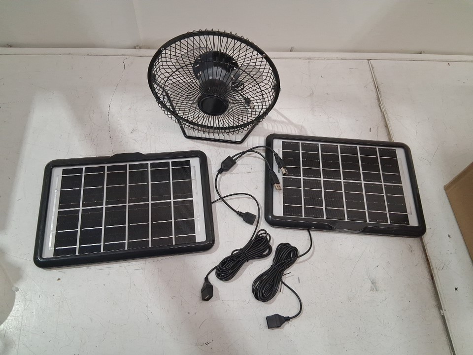 multifunctional Solar Fan with Dual Solar Panels - 8" PANELS - 25W - BLACK