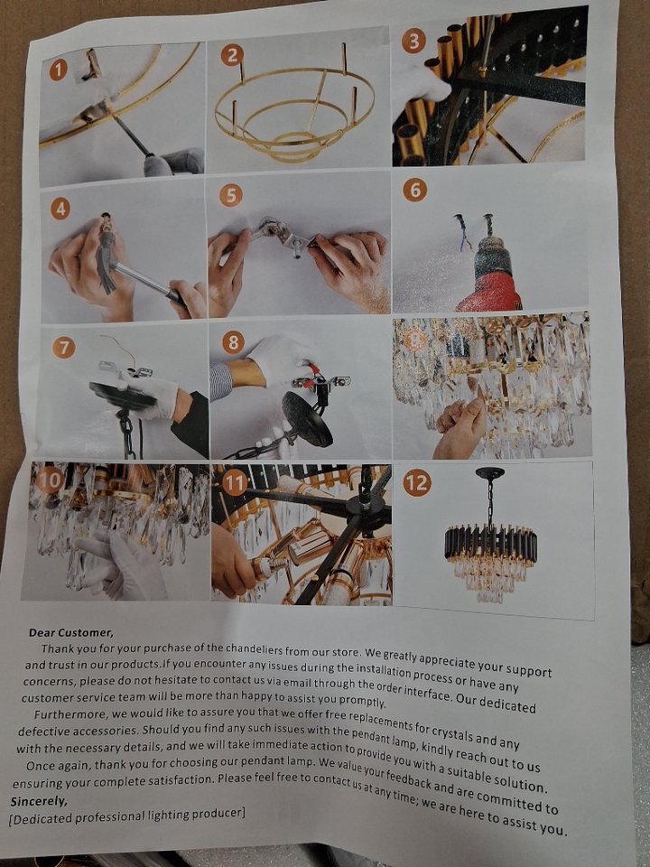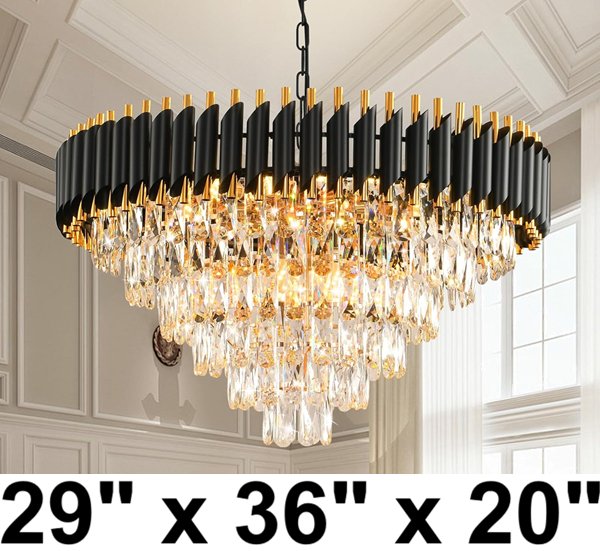 mssian modern 6-tier pendant lighting crystal chandelier - 29" x 36" x 20" - black/gold (model: YS0037CA03)
