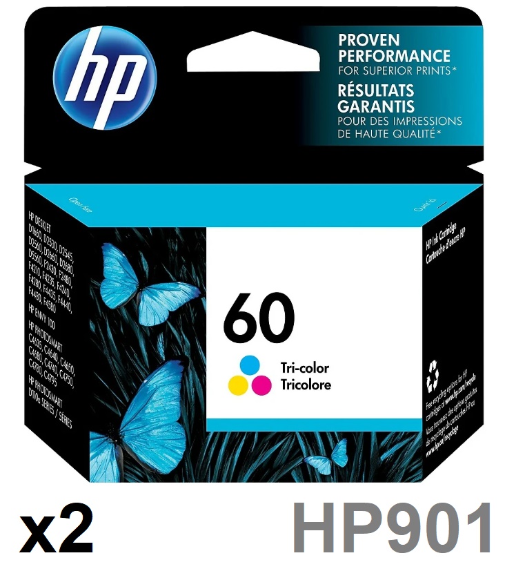 2 HP 60 Original Ink Cartridges - Replaces HP 901 - For Select HP DeskJet, OfficeJet, ENVY, and PhotoSmart Printers - Tri-Colour (Model: CC643WN)