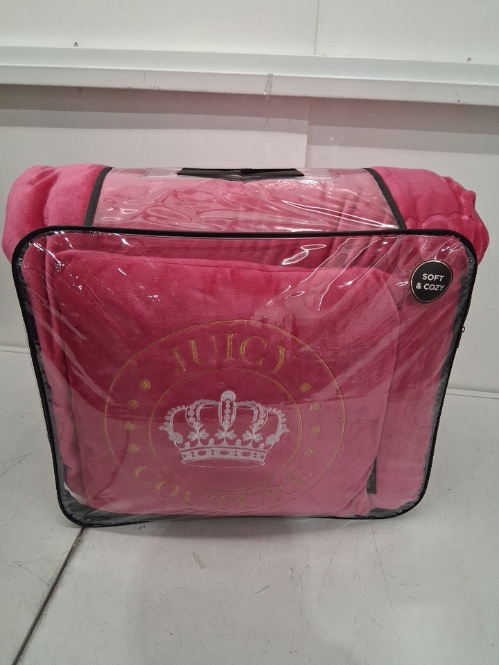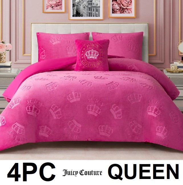 4PC juicy couture Embossed Plush Crown Comforter Set - queen - Hot pink