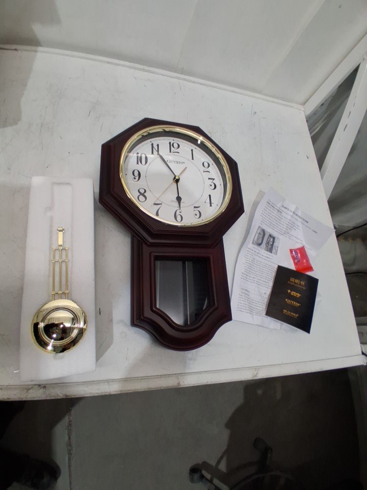 Tested for working sound, bent metal in battery area preventing function of clock (See photos).