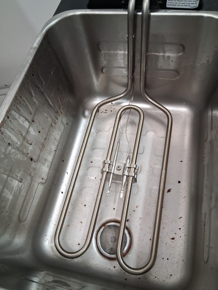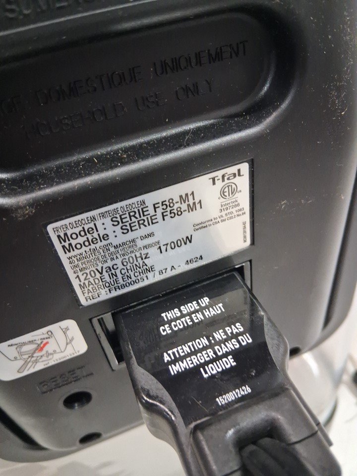Tested for power, there is some oil and food residue inside and outside of deep fryer, see photos.