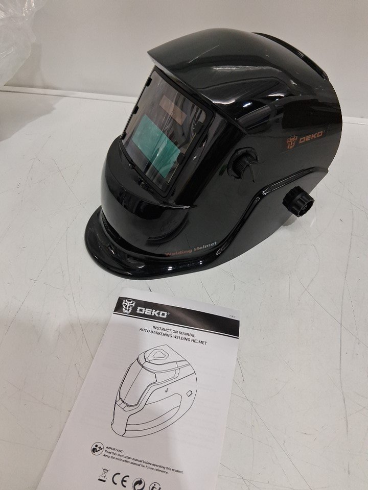 DEKOPRO solar powered Welding Helmet with auto darkening, changeable batteries and true colour - osfm - black (MODEL: adf dx-350d)