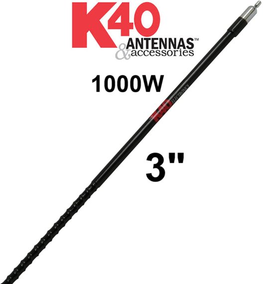 K40 Superflex Tunable Fiberglass CB Whip Antenna 3" - black/red (model: ‎SF-300)