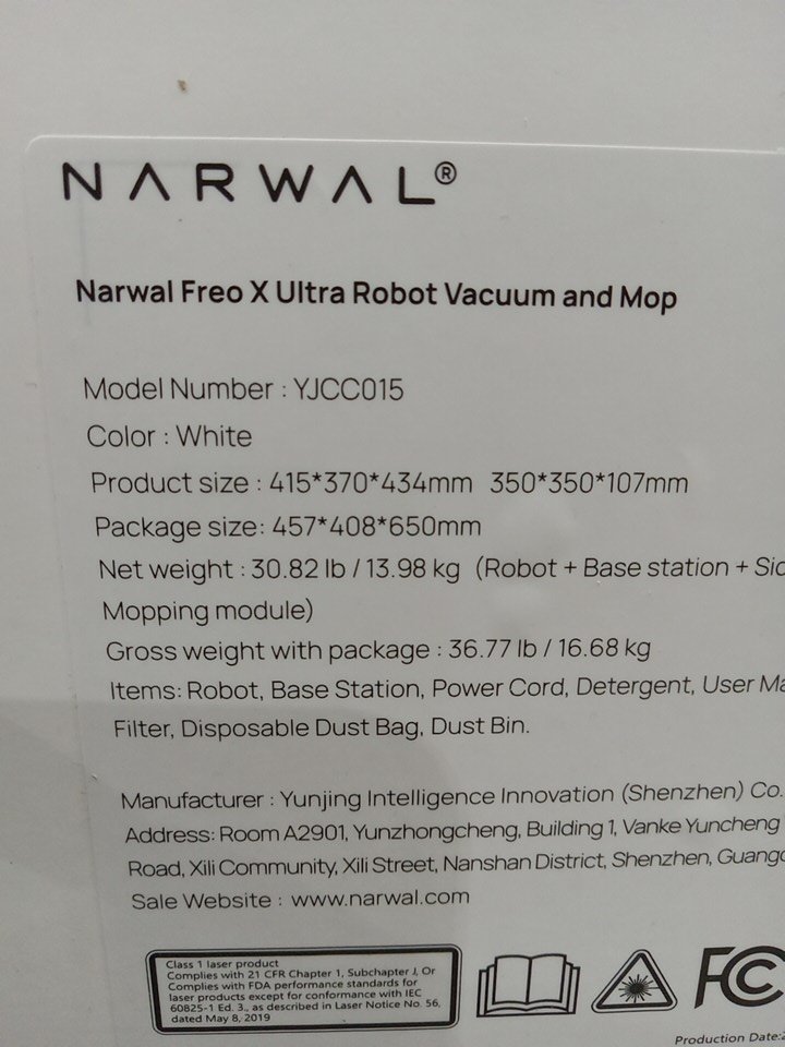 Narwal Freo X Ultra Robot Vacuum and Mop combo - 8200Pa, Auto Mop Drying/Washing, Self-Empty, DirtSense, All-in-One Base Station, Self-Contained Dust Processing - white (model: yjcc015)