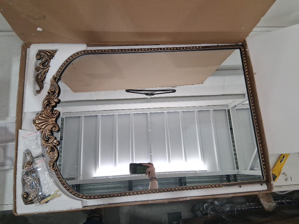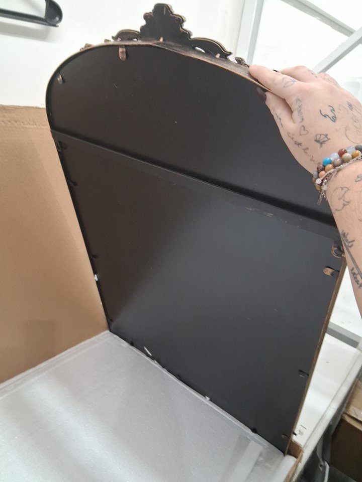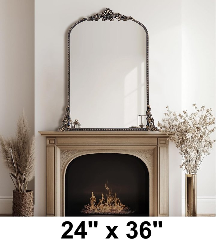 Growsun Vintage Arched Baroque Wall mounted/table top Mirror with shatterproof glass - 36" x 24" - vintage black