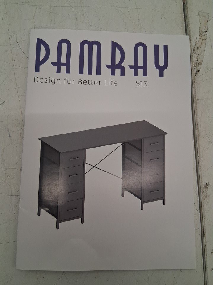 Pamray OFFICE Desk with 8 Fabric Drawers - 47" - White (Model: S13)