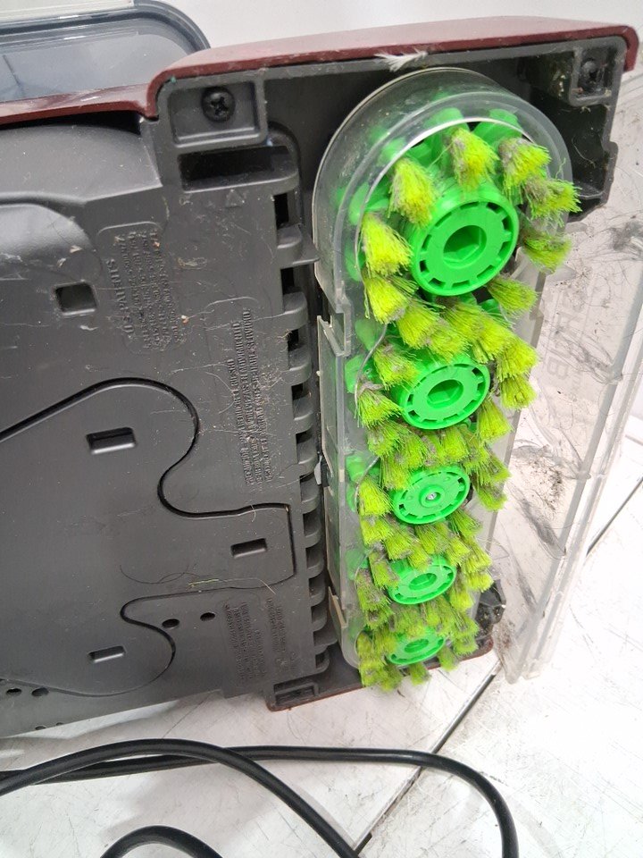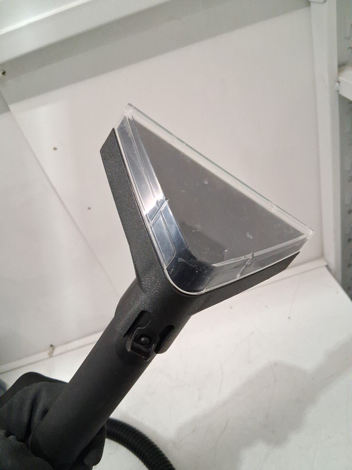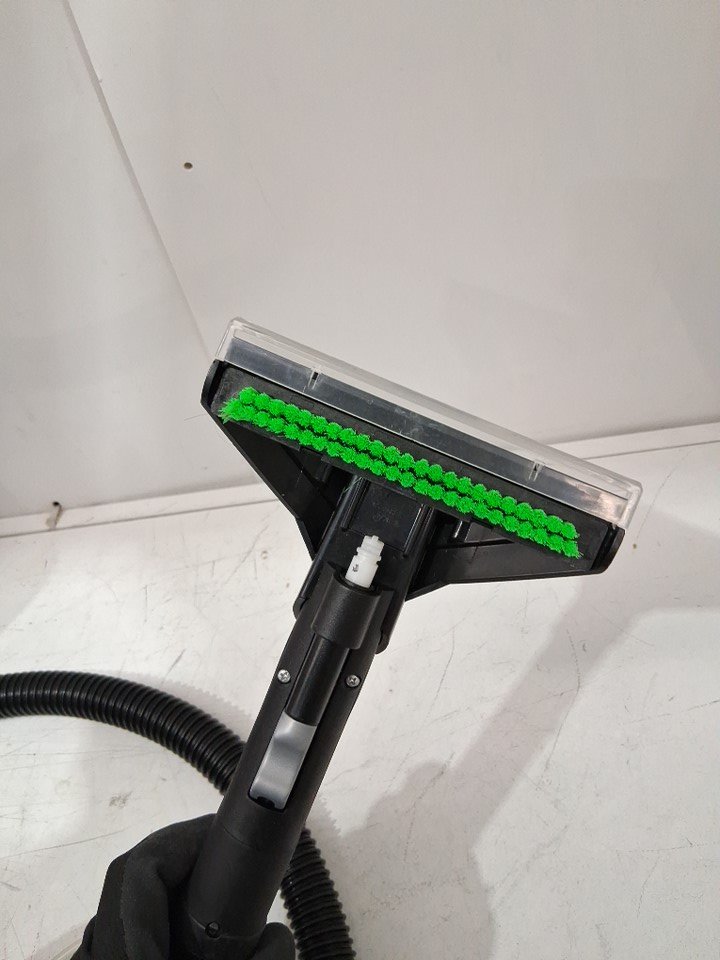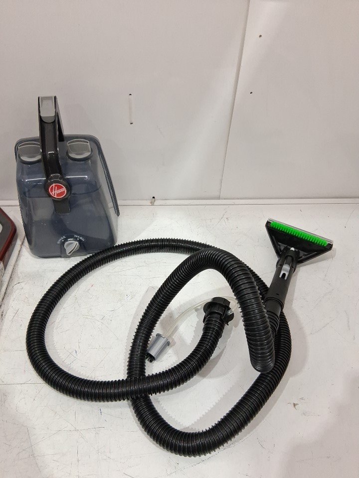 The liquid solution, the accessories attachment and the manual are missing from the original packaging. There are dirt/hair residue on the main floor brush and there are water stains on the water tank due to previous use. Tested for power and motor function only. (Please see photos)