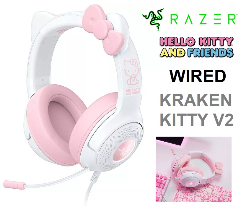 Razer x Hello Kitty and Friends Kraken Kitty V2 USB-A Wired Gaming Headset with Chroma RGB Lighting - White/Pink (Model: RZ04-04730500-R3M1)