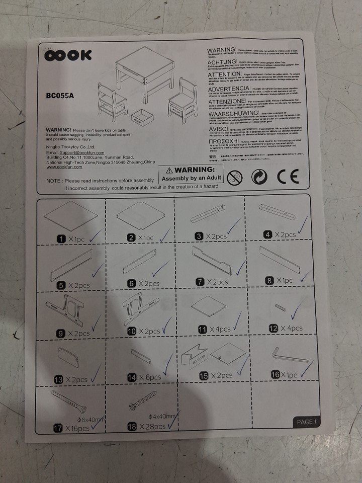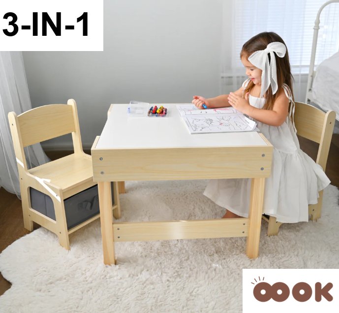 3-in-1 oook Toddler Table and Chair Set - white/wood (Model: BC055A)