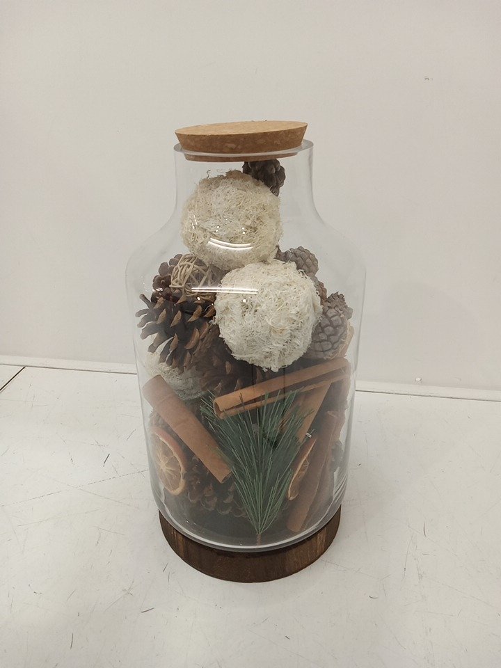Holiday Potpourri GLASS Vase - 12" - CINNAMON SCENTED (MODEL: 1931075)