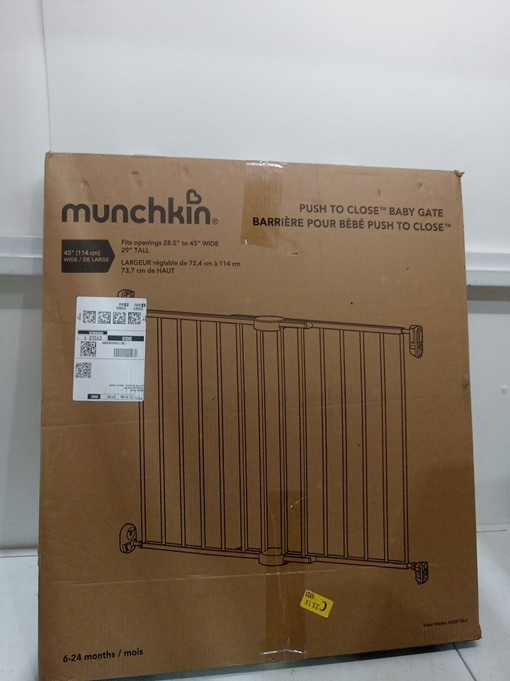 MUNCHKIN PUSH TO CLOSE BABY GATE FOR STAIRS WITH HARDWARE - 28.5" - 45" x 29" - BLACK (MODEL: MK0001)