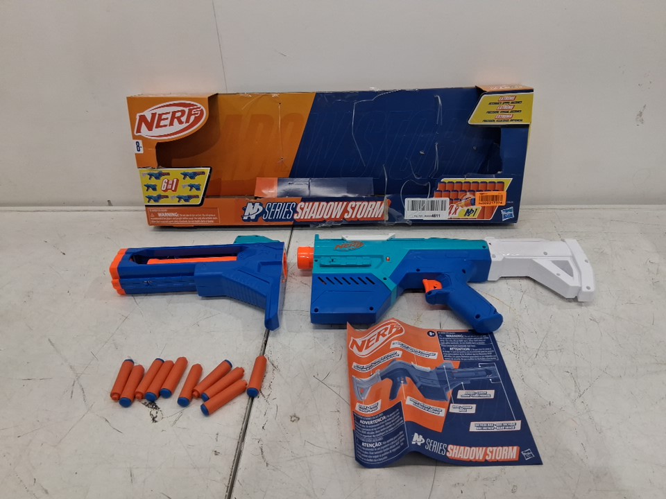 NERF N Series Shadow Storm Dart Blaster Includes Stock, Sight and Barrel attachments - 6-in-1 - Blue/Orange