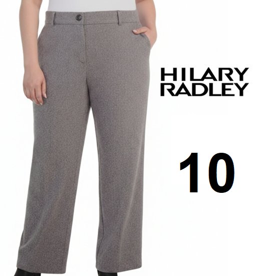 WOMEN'S HILARY RADLEY STRAIGHT LEG PANTS - 10 - TAUPE GREY, HERRINGBONE (MODEL: 1923830)