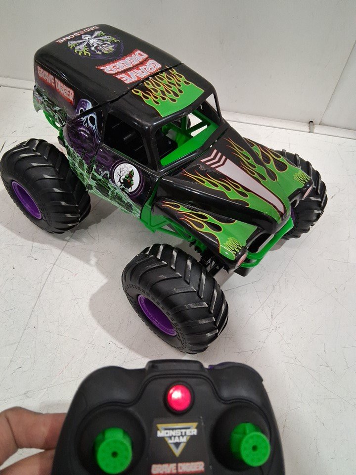monster jam smash & bash grave digger RC car- crash and repair- ages 4+ - black/green (model:‎6072500)