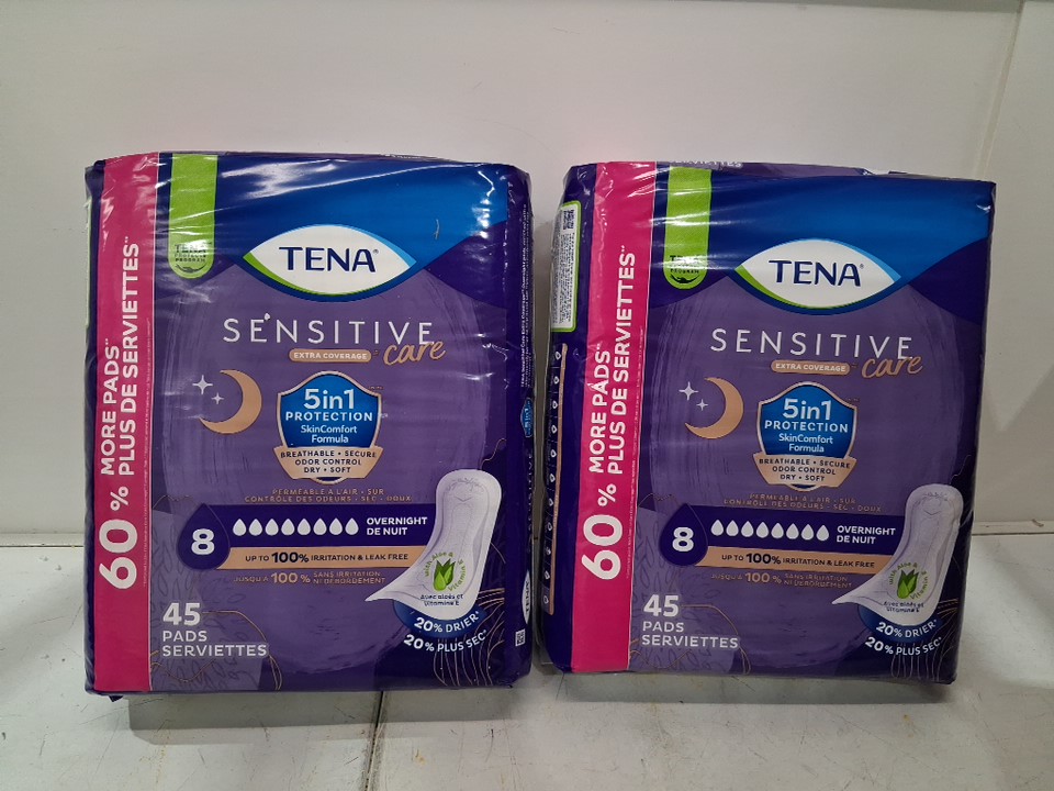 2PK TENA SENSITIVE CARE OVERNIGHT EXTRA COVERAGE PADS - 90 total - white (model: 054309 v-03)