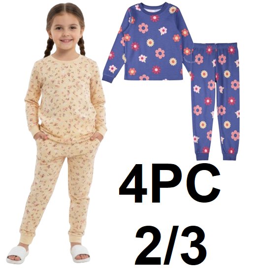 4PC girls PEKKLE long sleeve & pants set - 2/3 - yellow floral/blue floral