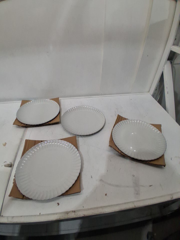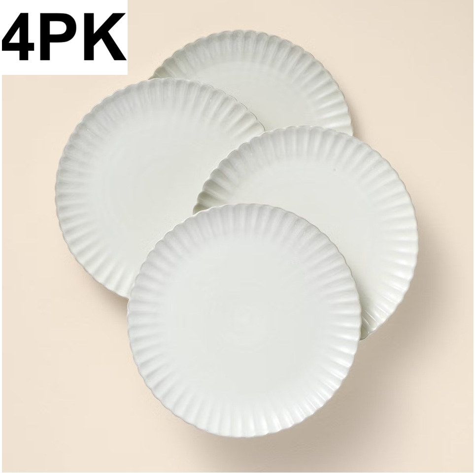 4PK Hearth & Hand with Magnolia Dishwasher/Microwave safe Farmhouse Scalloped Edge Stoneware Dinner Plates - 10.5" - Cream (Model: T2308)