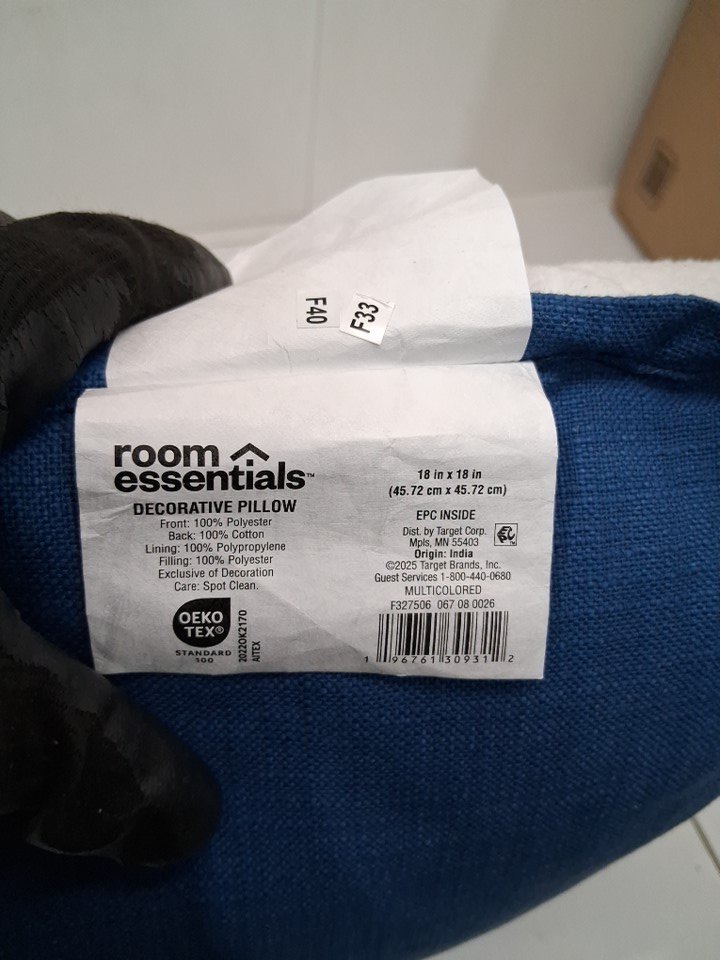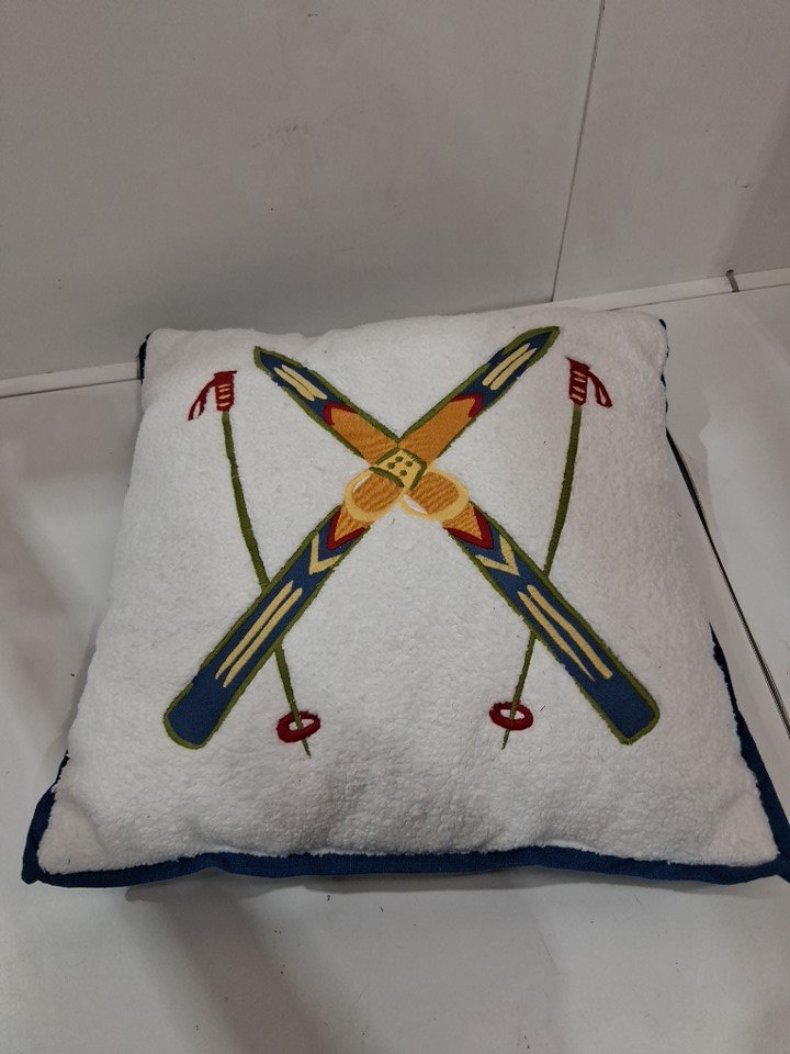 ROOM ESSENTIALS PLUSH DECORATIVE SQUARE THROW PILLOW - 18" X 18" - BLUE/WHITE SKI DESIGN