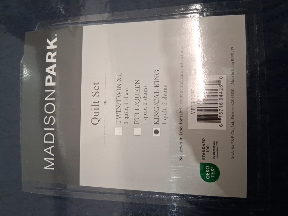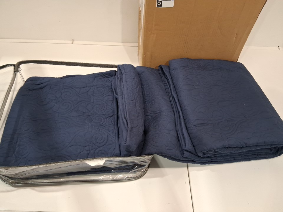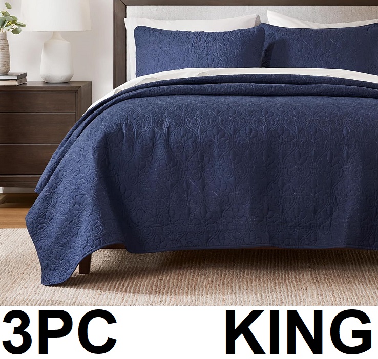 3PC Madison Park Quebec Dusty Pale Quilted Coverlet Set - king - navy