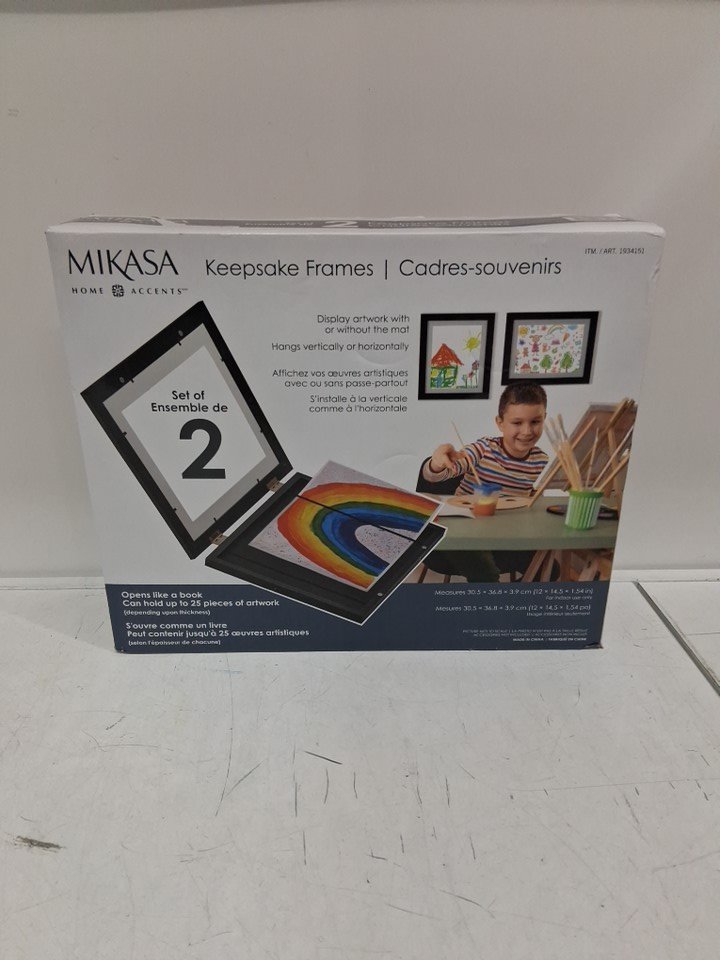 2PK MIKASA KEEPSAKE FRAMES, DISPLAY ARTWORK WITH OR WITHOUT A MAT - 12" X 14.5" - BLACK (MODEL: 1934151)