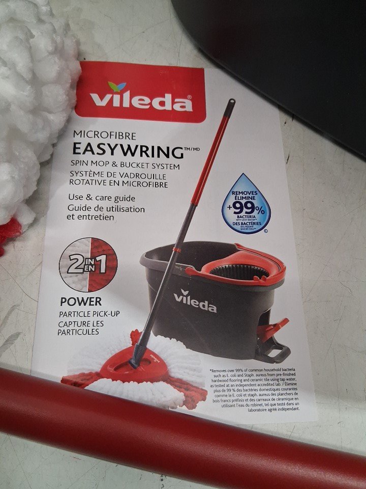 VILEDA EASYWRING POWER SPIN BUCKET SYSTEM WITH EXTENDABLE POLE and mop head - 22" to 48" - GREY/RED (MODEL: 172880)