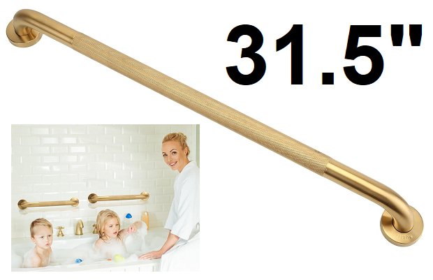 Non-Slip round Bathroom Shower Grab Bar - 31.5" - gold