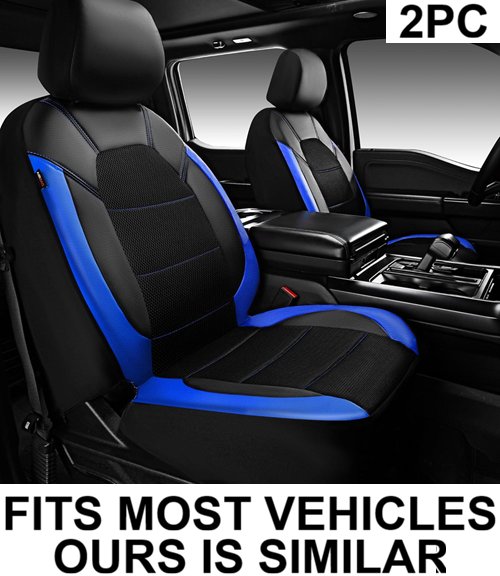 2PC front car SEAT COVERS - FITS MOST VEHICLES - BLACK/BLUE