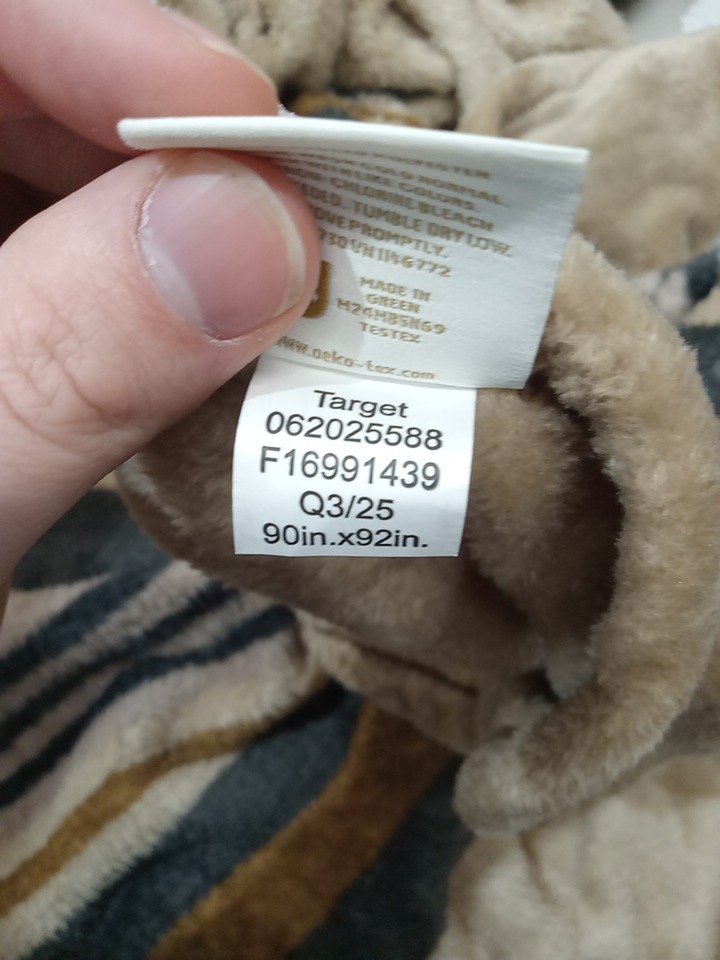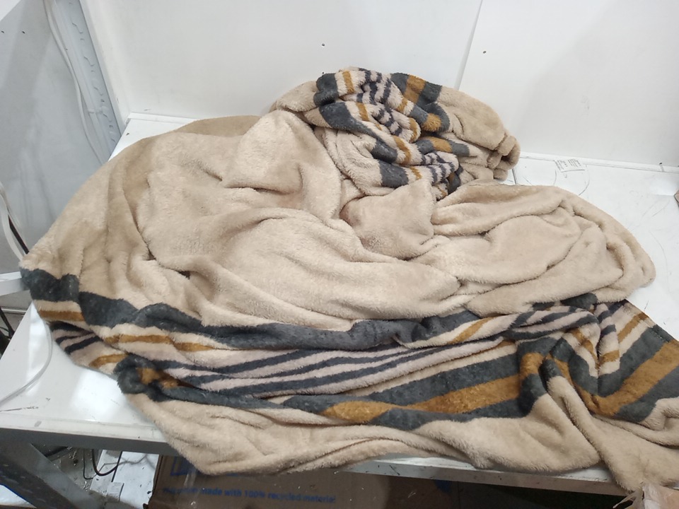threshold machine washable microplush blanket - 90" x 92" - khaki border stripe