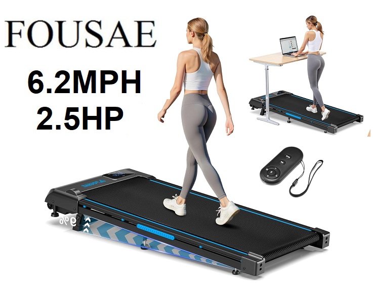 fousae walking pad incline treadmill for home with double frame - 330lbs capacity - 2.5hp - 6.2mph - black/blue (model: x390-ab)