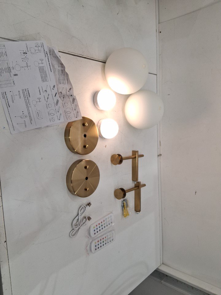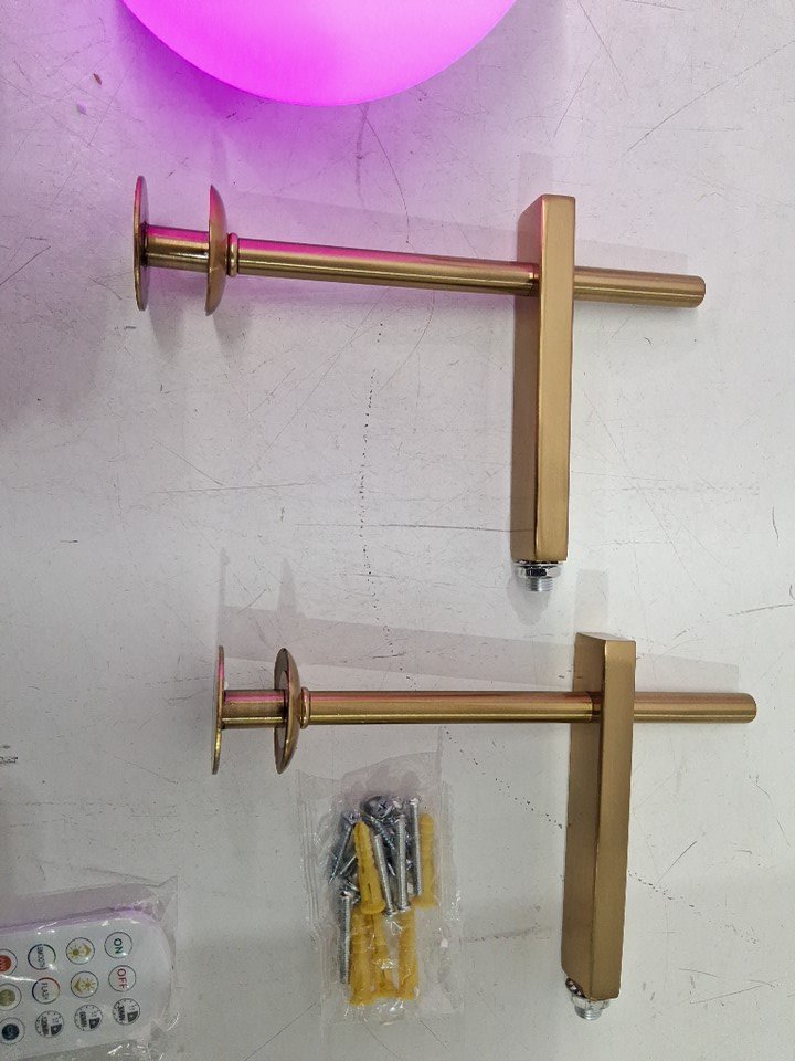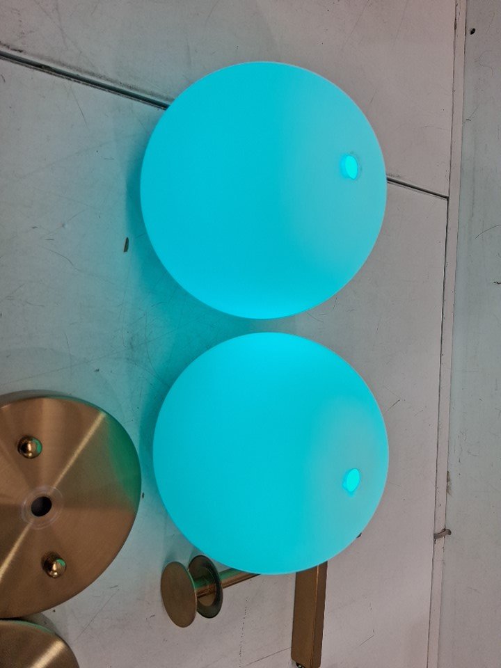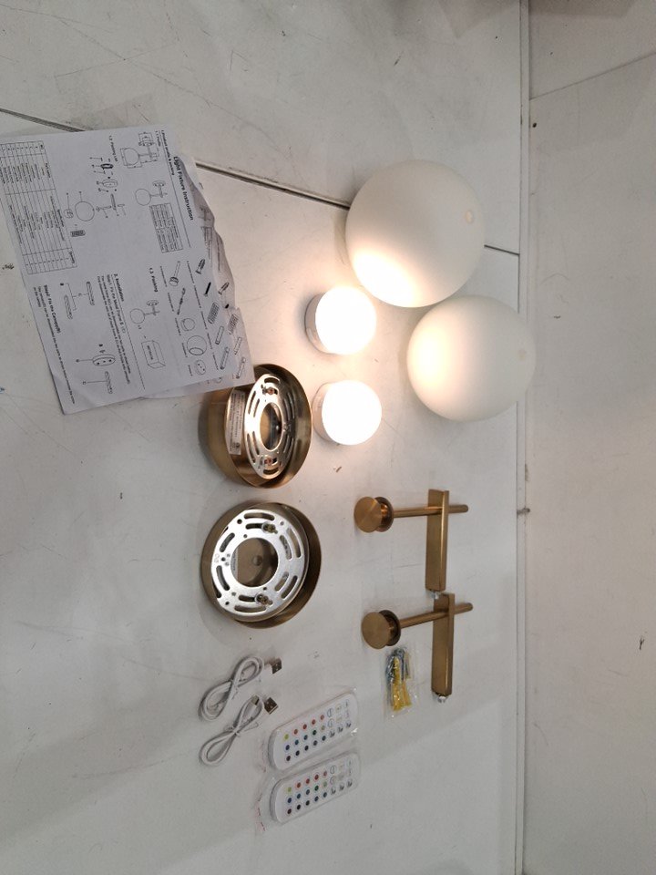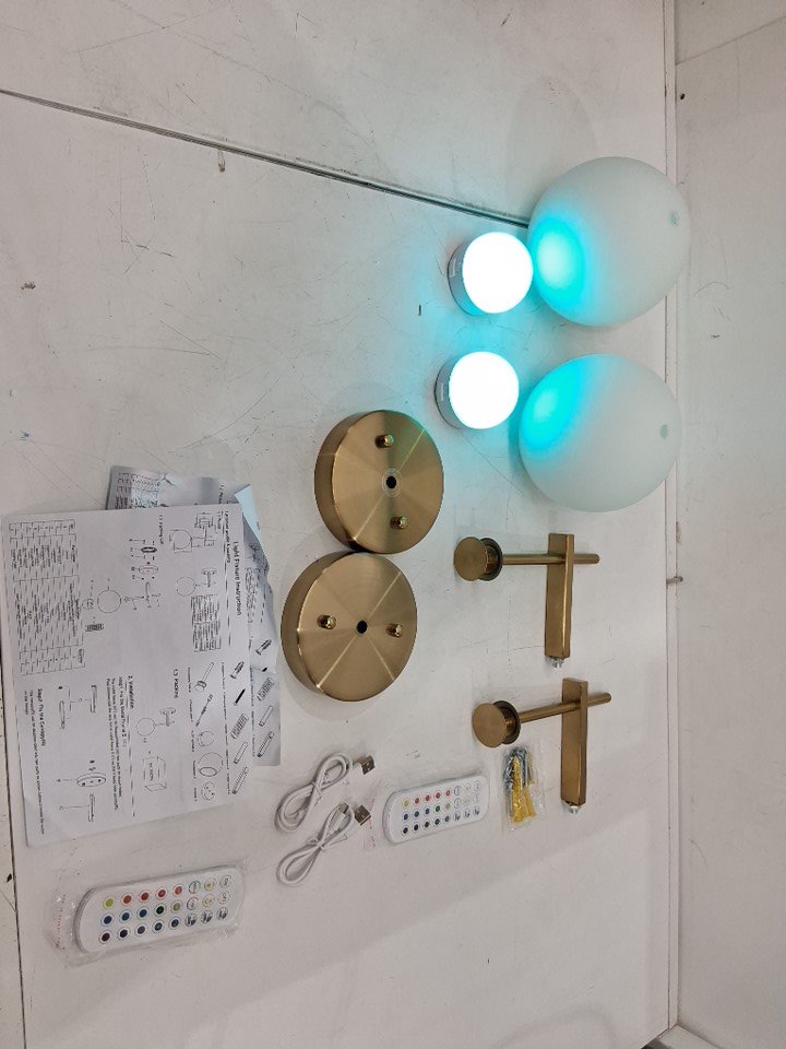 2PK wireless battery operated rgb light colour changing glass globe wall sconces with remote controls for bedroom, living room, etc - White/brass gold