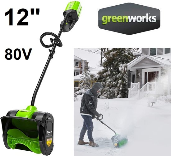 GREENWORKS PRO CORDLESS SNOW SHOVEL BATTERY and CHARGER INCLUDED - 80V - 12" - Green (MODEL: 2601202)