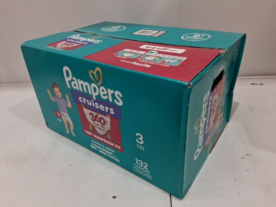 132PK PAMPERS CRUISERS 360° GAP-FREE FIT disposable baby DIAPERS - SIZE 3 (16-28LBS)