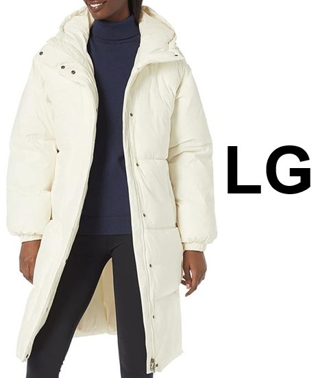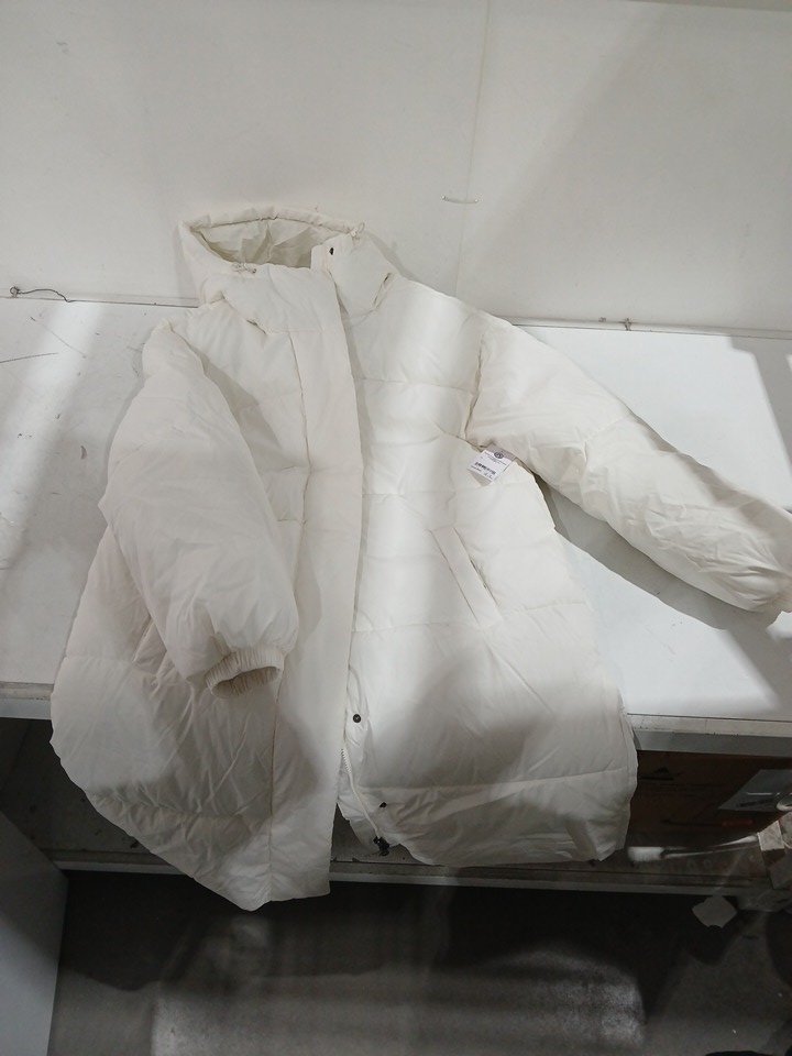 Amazon Essentials Womens Oversized Long Puffer Jacket - Large - White/Cream (Style: AEW3028F23)