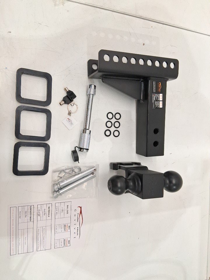GOVLVET Premium Alloy Steel Heavy Duty Adjustable Trailer Hitch/Tow with anti-theft hitch locking pins for Truck - 6" drop/rise, 2" & 2-5/16" ball hitches - 25,000LBS capacity - black