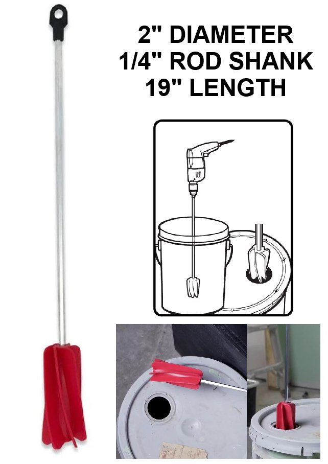 PAINT MIXER drill BIT / Attachment with narrow head for 5-gallon containers - 2" DIAMETER, 1/4" rod shank, 19" LENGTH - Red