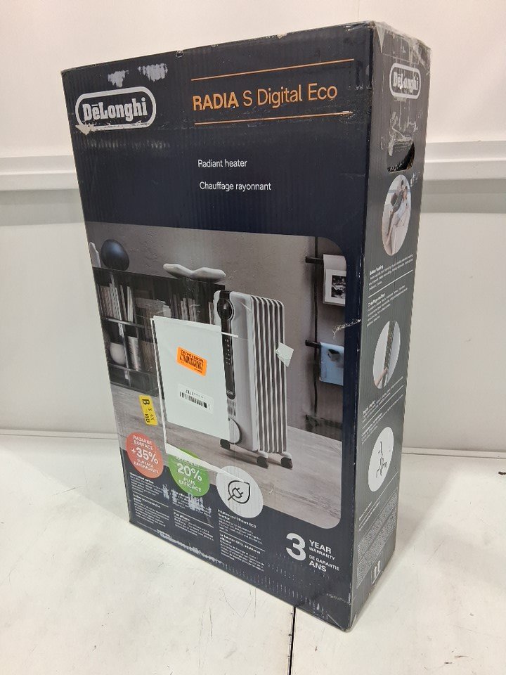 DELONGHI RADIAS ECO DIGITAL OIL FILLED FULL ROOM ELECTRIC SPACE HEATER RADIATOR - LIGHT GREY (MODEL: TRRS0715ECA)