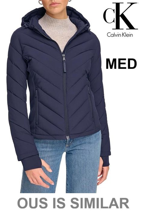 WOMEN'S Calvin Klein Lightweight Hooded Puffer Jacket - MEDIUM - Blue (style: cw333126)