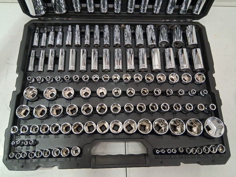 Some dust and dirt in the inside and on some sockets indicating prior use. There is a crack on the outside of the case and one missing latch. See photos.