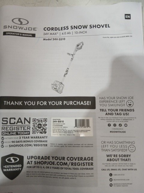 snowjoe ionmax cordless snow shovel with battery and charger- 10"W, 24v 4.0sh battery- blue (model: 24v-ss10)