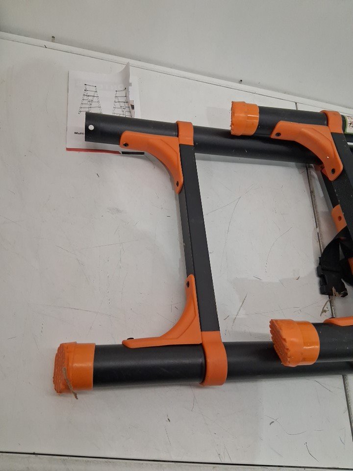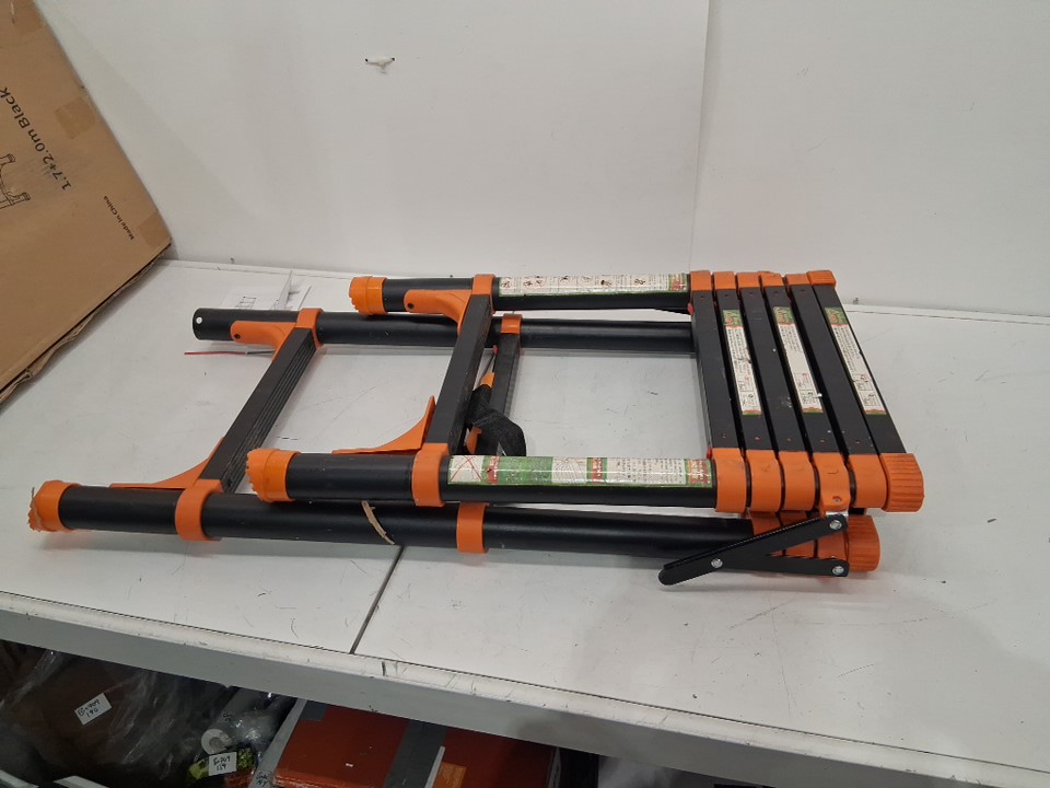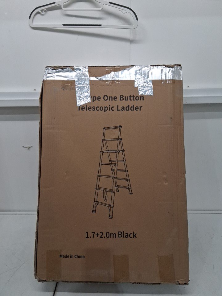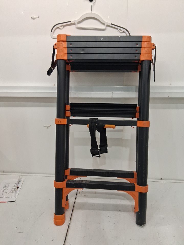 ladder has visible dirt and dirt splatter on ladder, one foot piece is missing on bottom of ladder