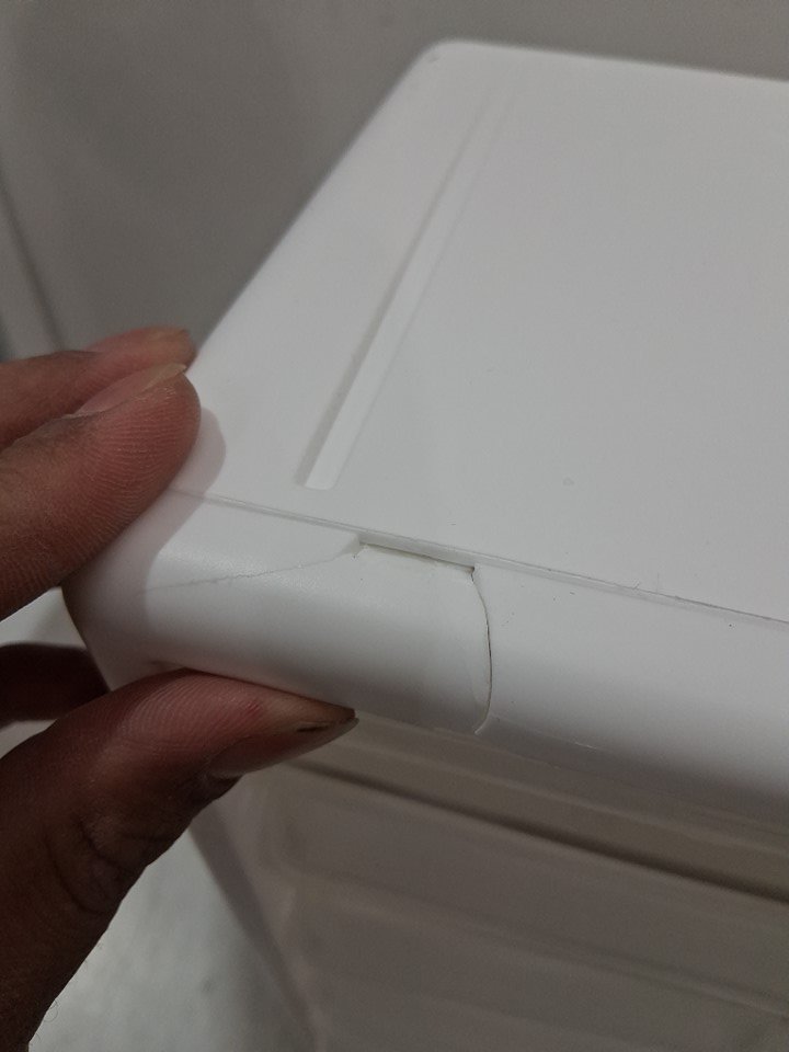 please note that the box is damaged on the upper frame due to pressure while shipping (see photos).