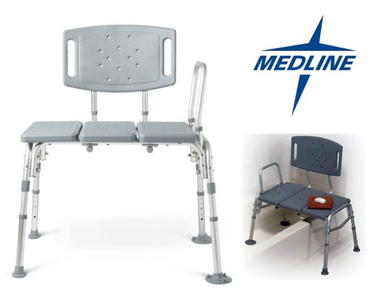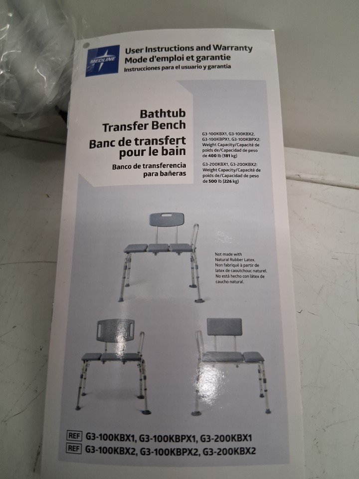 MEDLINE GUARDIAN bathtub TRANSFER BENCH WITH BACK support & suction feet - max 500lbs - GREY (MODEL: G3-200KBX1)
