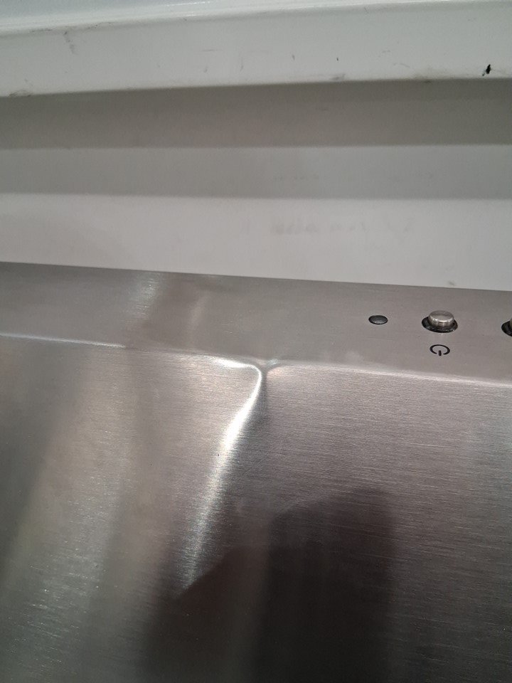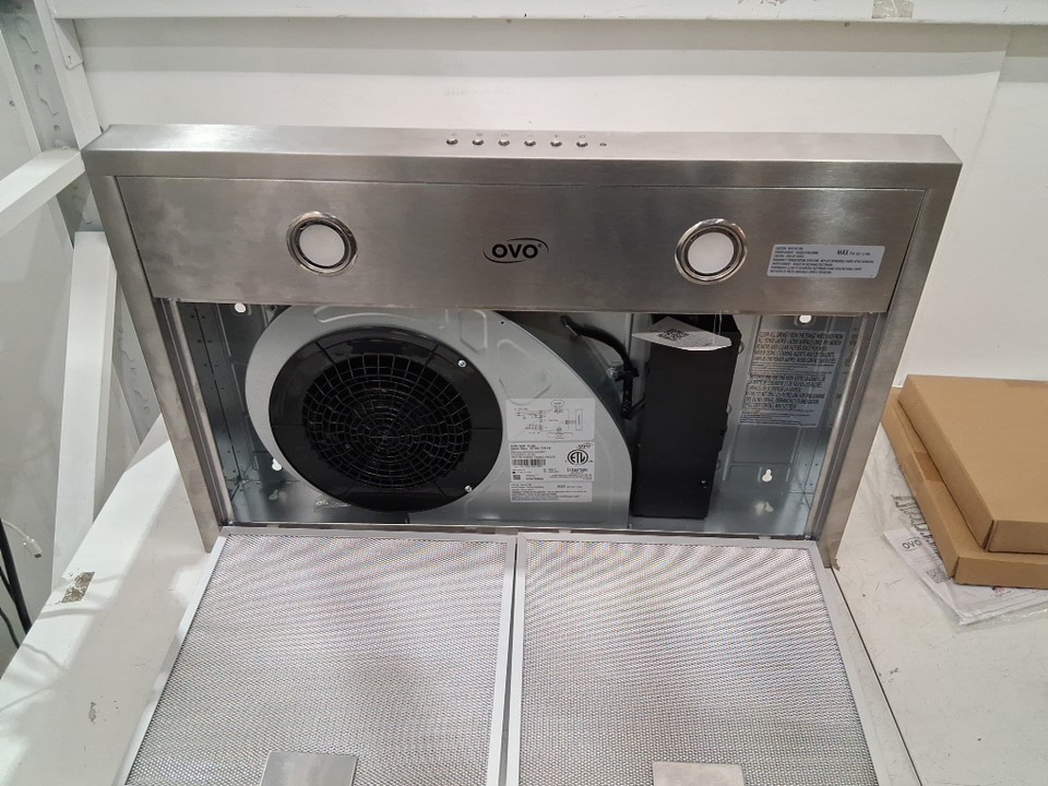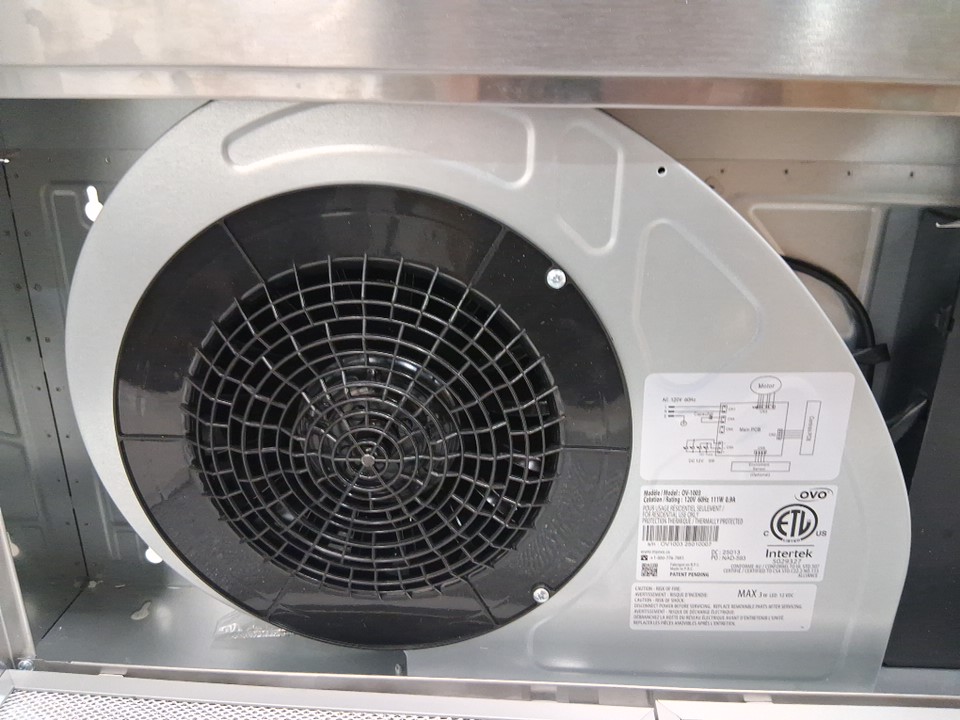the fan has dent due to shipping and some stains on it. can't test due to nature of the plug (see photos).