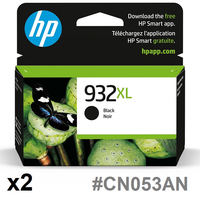 2 HP 932XL Ink Cartridges for Select OfficeJet Printers - Black (Model: CN053AN)