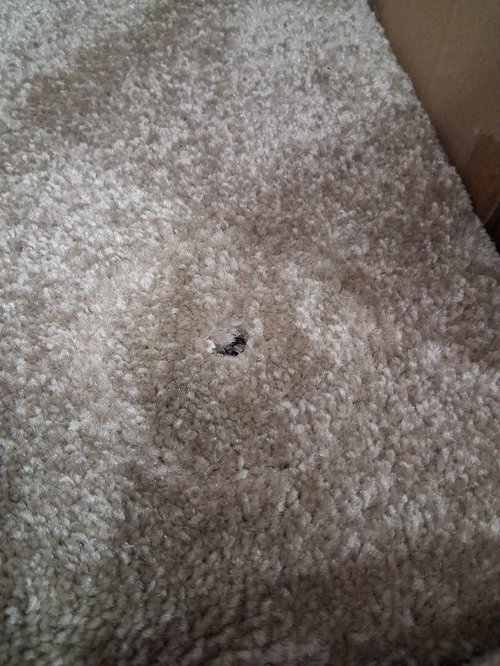 Has a musty smell and some imprints on the surface from being used.