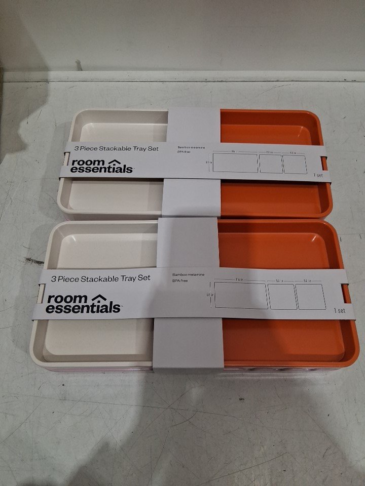 2 (3pc) room essentials bamboo Melamine Decorative stackable Tray set- Rose Pink/white/orange