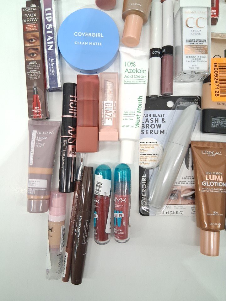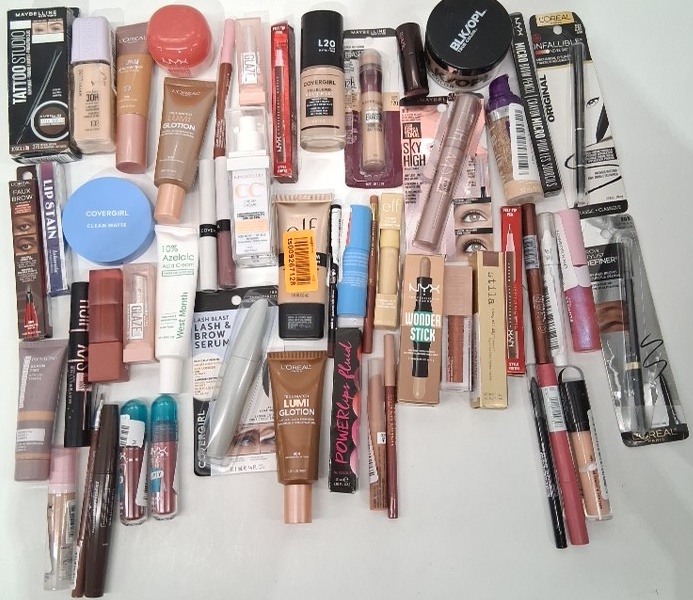 50+ assorted makeup products - assorted brands, shades and finishes - foundation / concealer / blush / lipstick / brow gel / mascara / primer