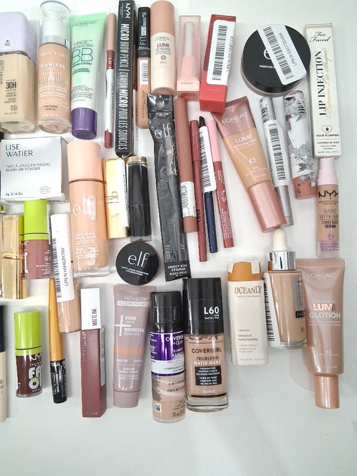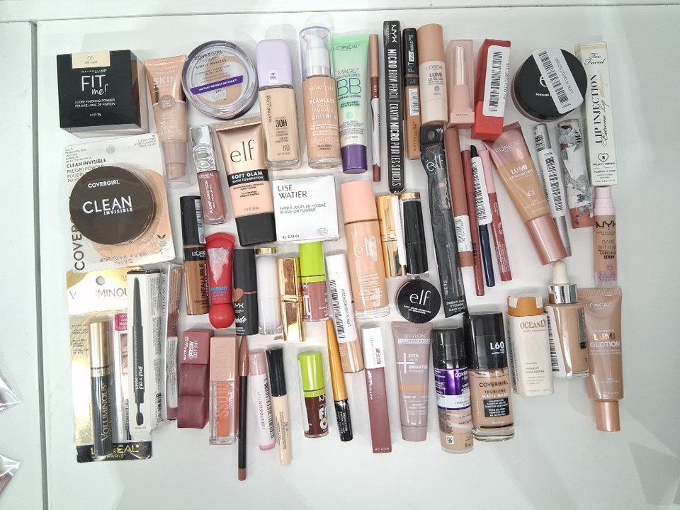 50+ assorted makeup products - assorted brands, shades and finishes - foundation / concealer / blush / lipstick / brow gel / mascara / primer