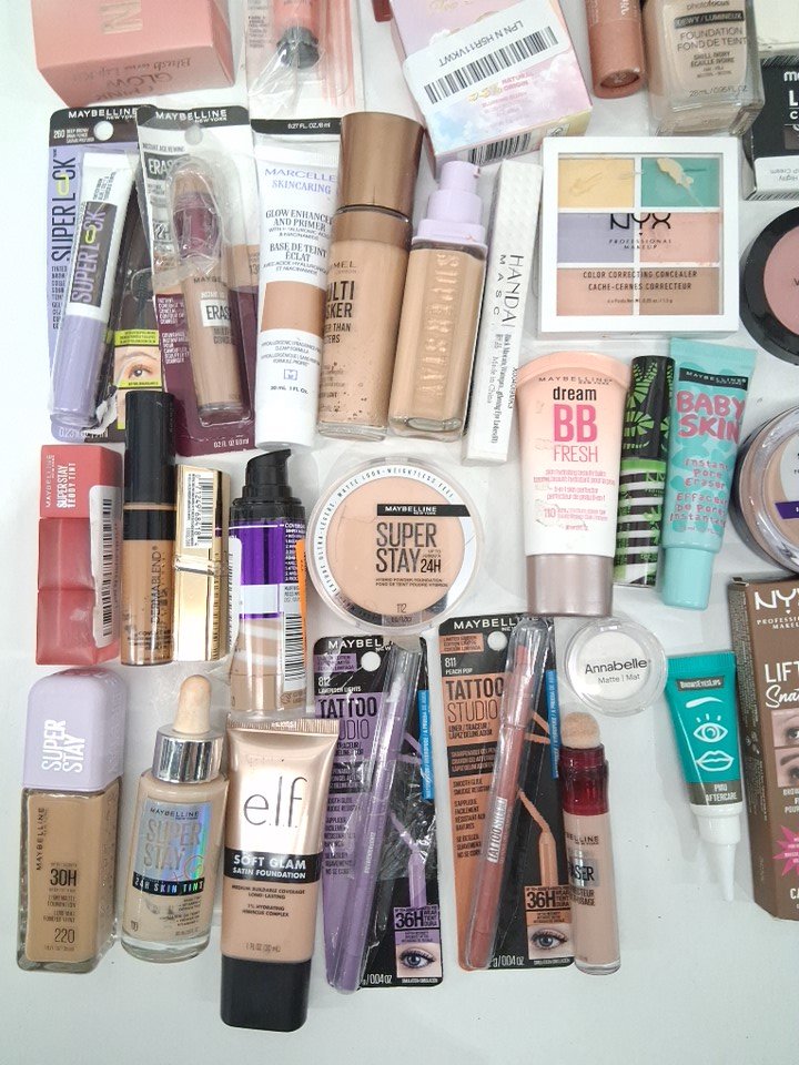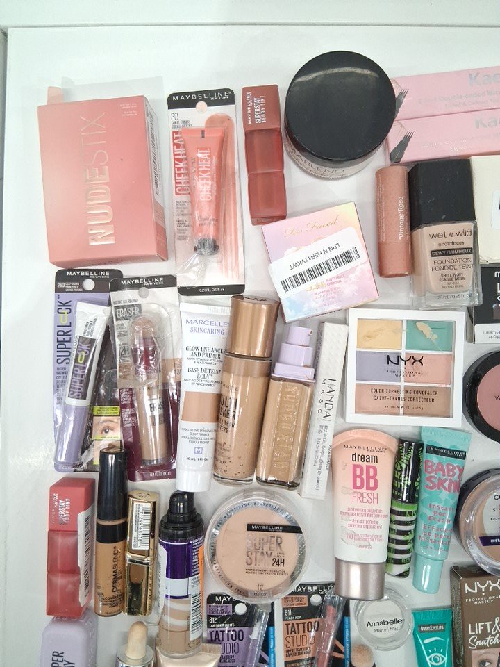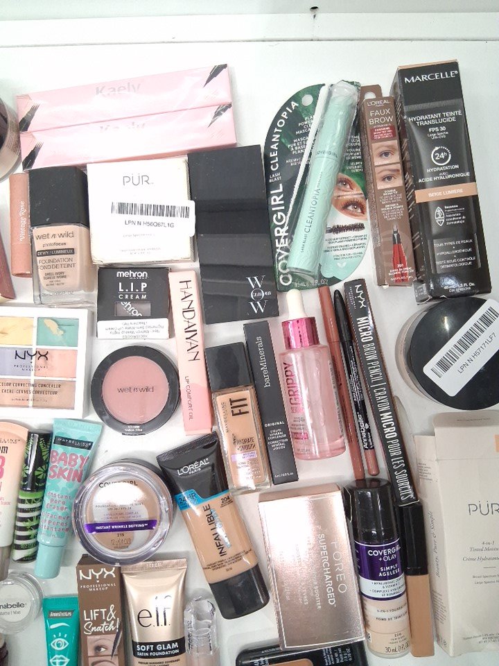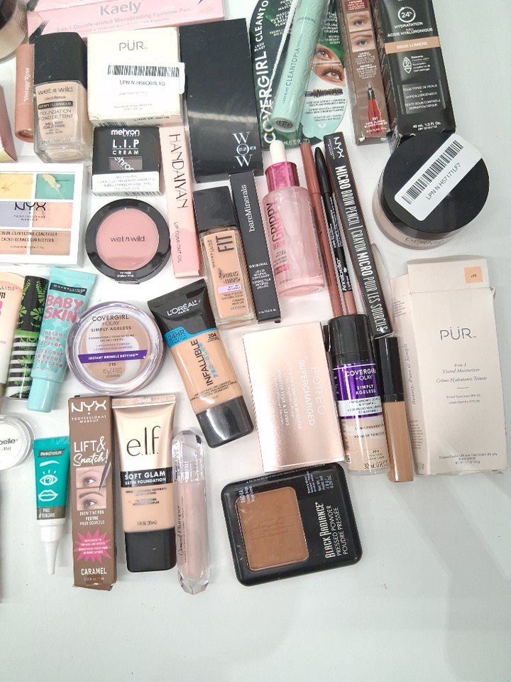50+ assorted makeup products - assorted brands, shades and finishes - foundation / concealer / blush / lipstick / brow gel / mascara / primer